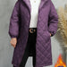 Elegante chaqueta con capucha y forro morado para mujeres - Cierre de cremallera, manga larga, tejido no elástico con bolsillos, ideal para otoño/invierno, ropa casual de invierno | Diseño acolchado | Chaqueta con cremallera