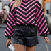 Este suéter elegante mujer combina a la perfección bloques de color llamativos con un patrón de rayas. Su diseño de cuello redondo y manga larga lo convierte en la prenda ideal para un look casual pero sofisticado, fabricado a mano con esmero.